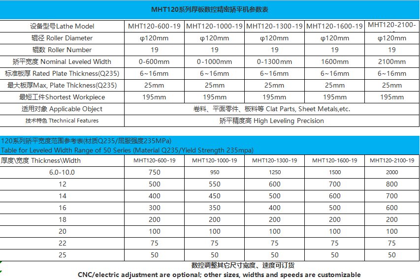 全自動MHT120數(shù)控矯平機適用4-20mm厚金屬可定做不同寬度(400-2300mm寬),鋼板,不銹鋼,銅板,鋁板,網(wǎng)孔板等材料,可根據(jù)客戶不同材料要求定制生產(chǎn)。金屬材料在較大彈塑性彎曲條件下,不管其原始彎曲程度有多大區(qū)別,數(shù)控精密矯平機利用材料的“包辛格效應(yīng)”對板材進(jìn)行多次反復(fù)彎曲,逐漸減小壓彎撓度,使多種原始曲率逐步變?yōu)閱我磺?,并將其矯平,達(dá)到工藝要求的平整精度。